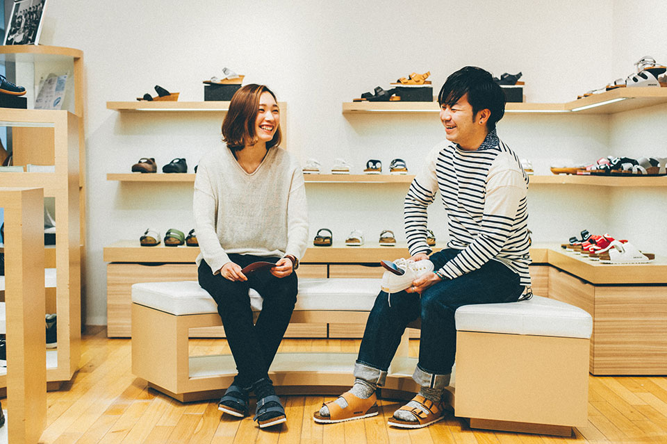 ビルケンシュトックの履き心地を体感して頂くのに、店頭ではインソールから試して頂く場合もあります。お客様が履いてきた靴に装着するだけで、その靴の履き心地が変わったと感動されることが多いです。